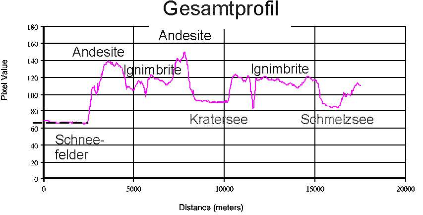 Abbildung 10: Ca. 17 km langes DN-Profil aus der Subszene (TM-6) Cerro Bonete (vgl.